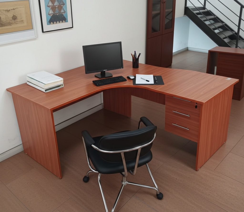 Elevate your workspace with the 1.4M Curved Wooden Office Desk, designed to combine modern aesthetics, functionality, and ergonomic efficiency. Crafted from premium quality wood with a smooth, polished finish, this 1.4-meter curved desk offers ample space for computers, documents, and office essentials while maintaining a sleek and professional look. Its elegant curved design enhances both comfort and workflow, making it ideal for home offices, executive rooms, and professional workspaces. Built with sturdy construction, this desk ensures long-lasting durability while complementing contemporary interior designs.