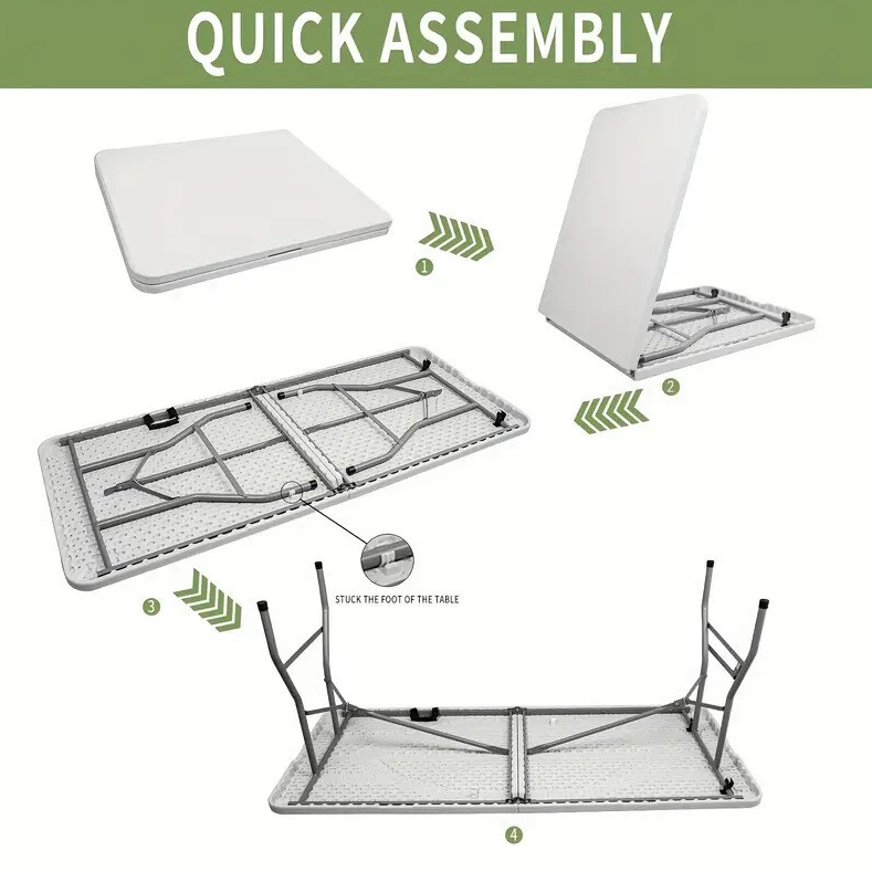 The 1.5-meter length provides ample space for family meals, group activities, or casual gatherings. Despite its generous size, the table folds easily for compact storage, making it ideal for apartments, small kitchens, event spaces, or outdoor patios. The lightweight design allows effortless movement, so you can rearrange or transport it without hassle. This foldable feature makes it a versatile choice for both permanent and temporary setups.