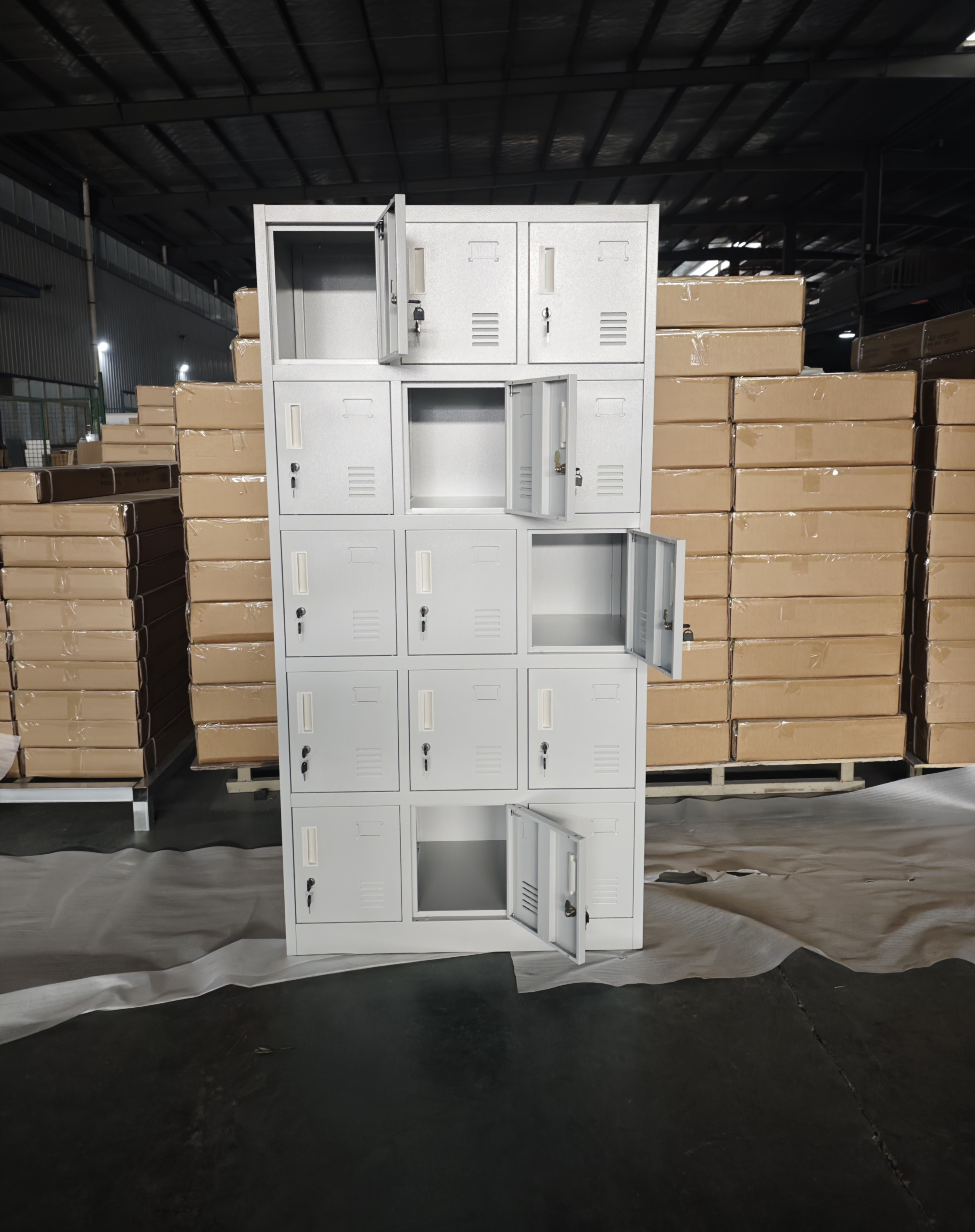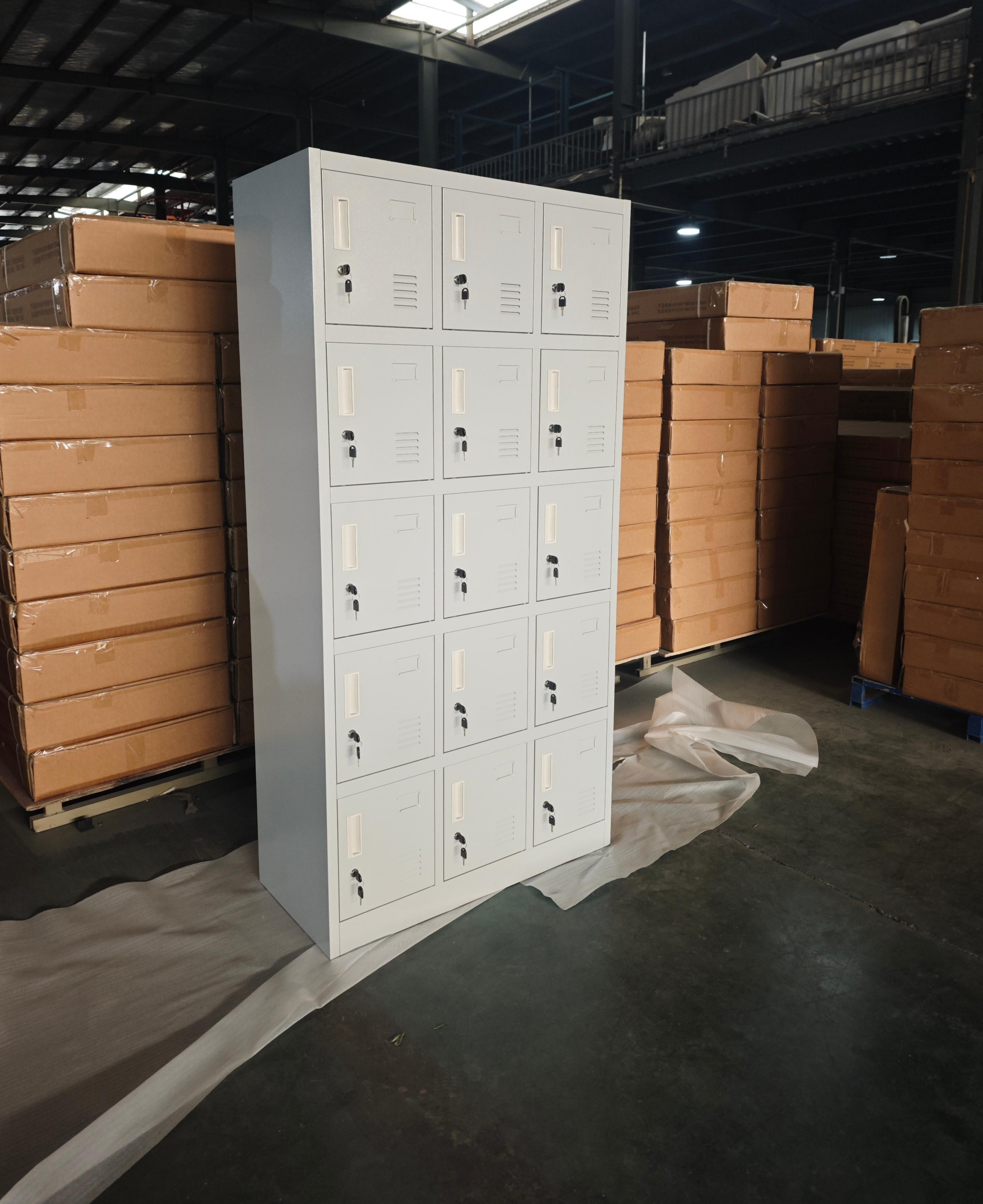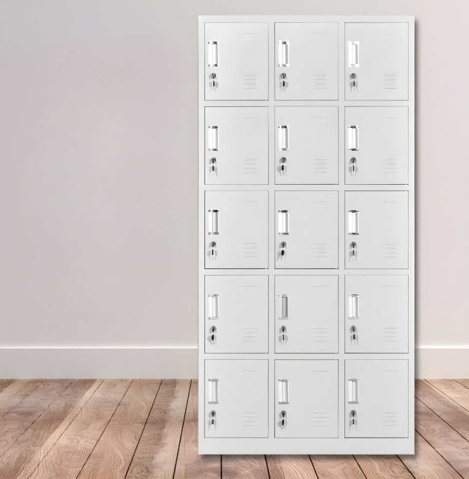 The 15-compartment design allows multiple users to store their items safely and independently. Each locker comes with a secure lockable door and a strong handle, offering easy access while keeping belongings protected. The spacious interior of each compartment accommodates files, bags, office supplies, and personal items efficiently, helping reduce clutter and promote an organized work environment.