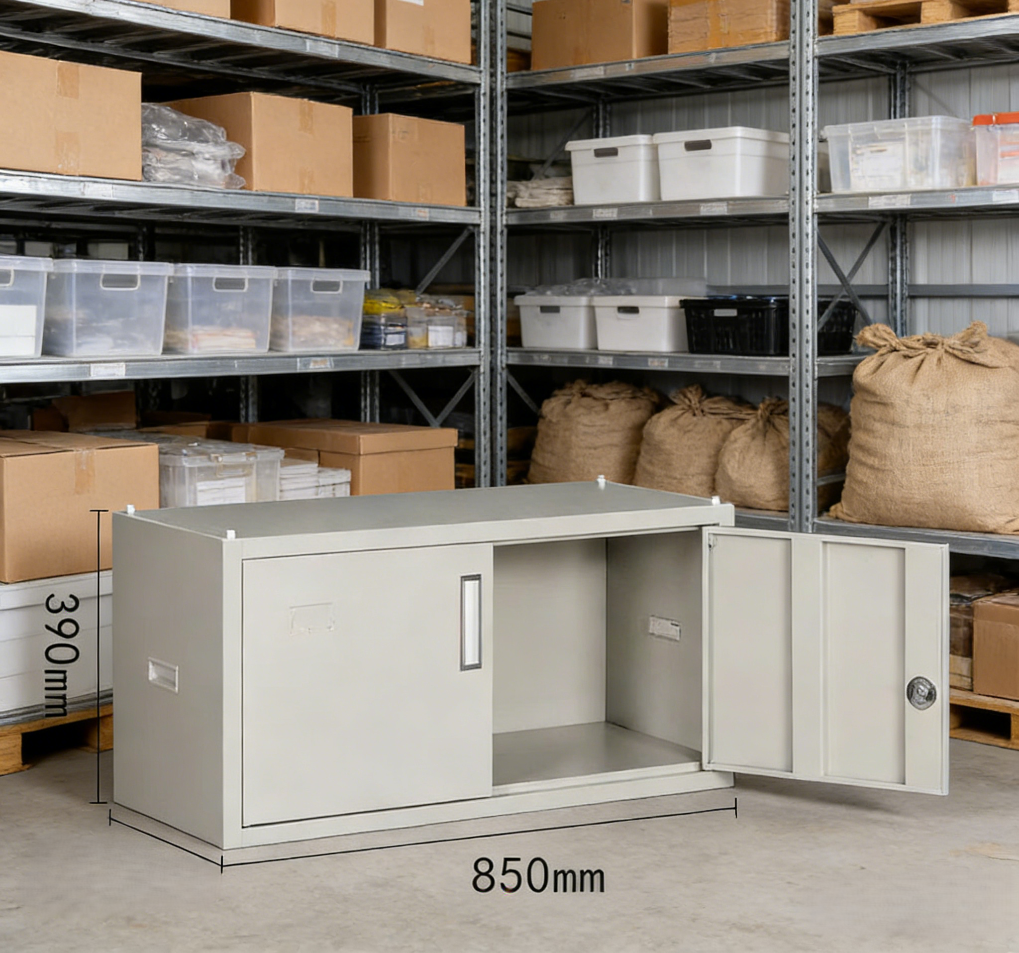The cabinet features two spacious doors that open smoothly to reveal ample storage space. Inside, adjustable shelves provide flexibility for storing files, folders, stationery, or larger office equipment. The double-door design ensures that contents remain organized and easily accessible while maintaining a clean and tidy appearance.