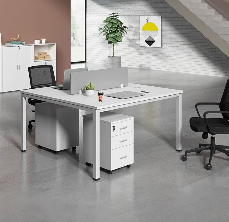 The two-way design is perfect for maximizing space and fostering productivity. Each user enjoys ample workspace, while the compact structure fits comfortably in small to medium-sized offices. The workstation’s layout supports organization and efficiency, keeping essential items within reach while maintaining a neat and clutter-free environment. Its clean lines and neutral color make it suitable for various interior styles, from modern and minimalist to contemporary and industrial offices.