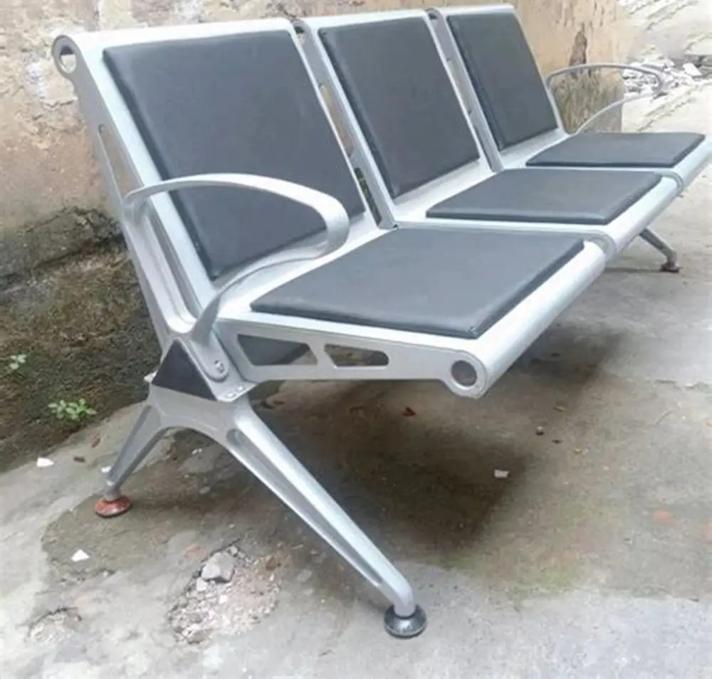 3 Seat Padded Metal Frame Office Bench