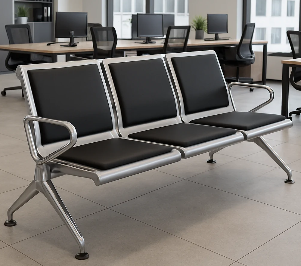 Built with a strong metal frame, this reception bench offers outstanding stability and durability for high-traffic areas. The sturdy construction supports regular daily use without wobbling or compromising safety. Its wide seating layout accommodates three people comfortably, making it an ideal seating solution for offices with frequent visitor flow. The robust legs provide excellent balance while maintaining a sleek and modern appearance.