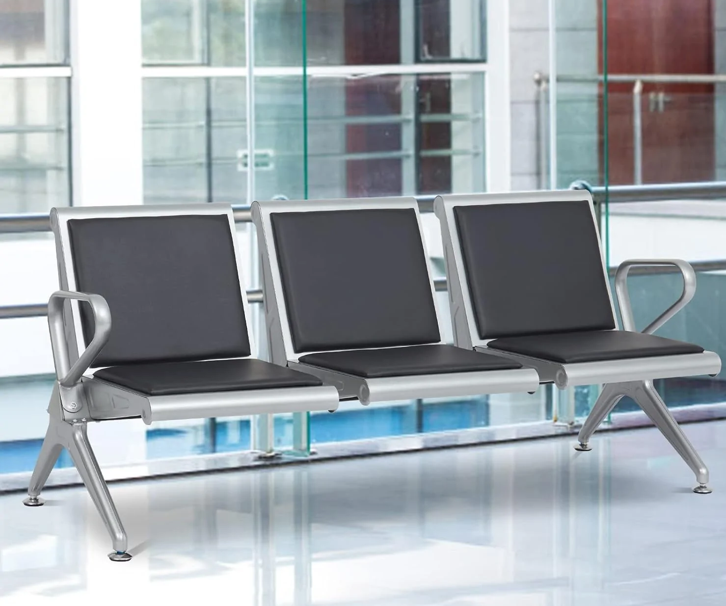 Dual Seating Design: Two connected seats offer space-efficient seating for guests, clients, or patients.