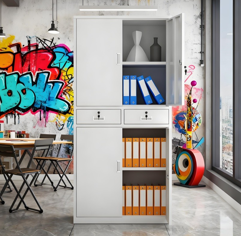 Upgrade your workspace with the 4 Door Half Glass Home Office Cabinet, a perfect blend of modern design, smart storage, and professional elegance. Designed to keep your office organized while enhancing its visual appeal, this cabinet is an ideal storage solution for home offices, corporate spaces, study rooms, and libraries.