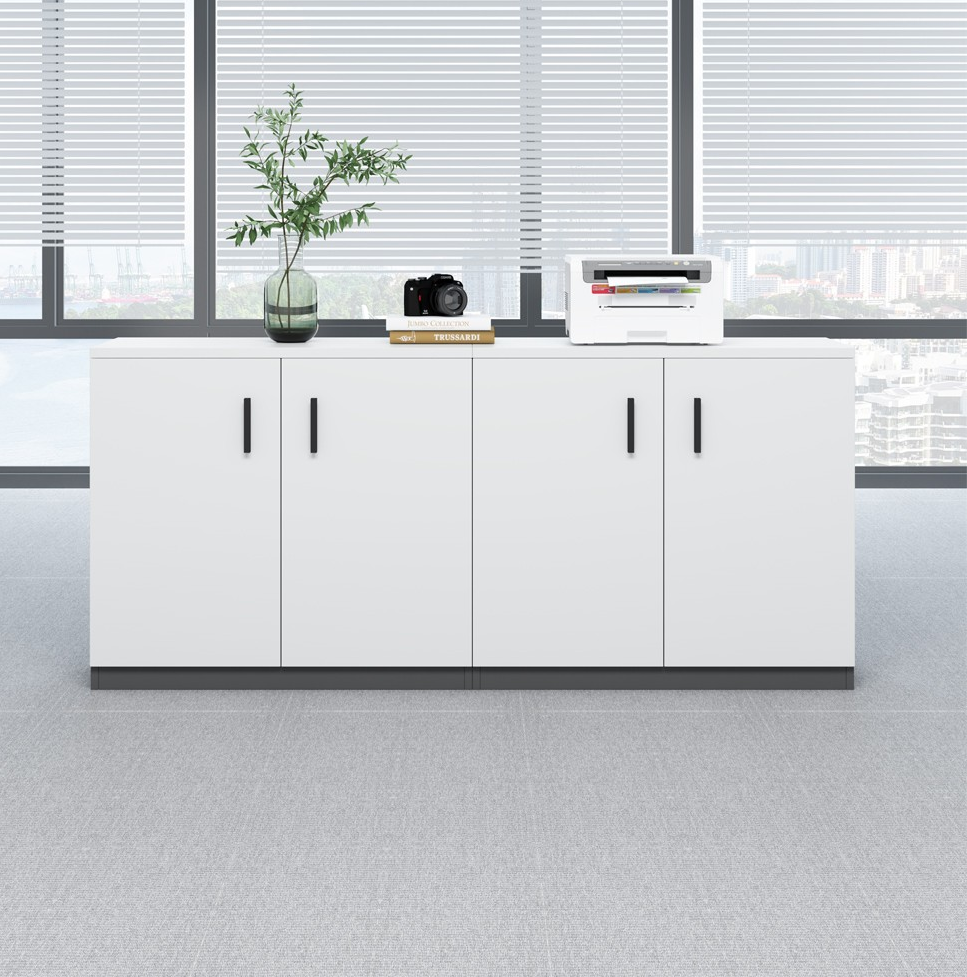 The cabinet features four spacious doors, each opening to reveal compartments that can be customized to your organizational preferences. Adjustable shelving options allow you to store files, binders, stationery, and other office essentials efficiently. By separating items into different sections, the cabinet reduces clutter and ensures essential materials are always within easy reach.