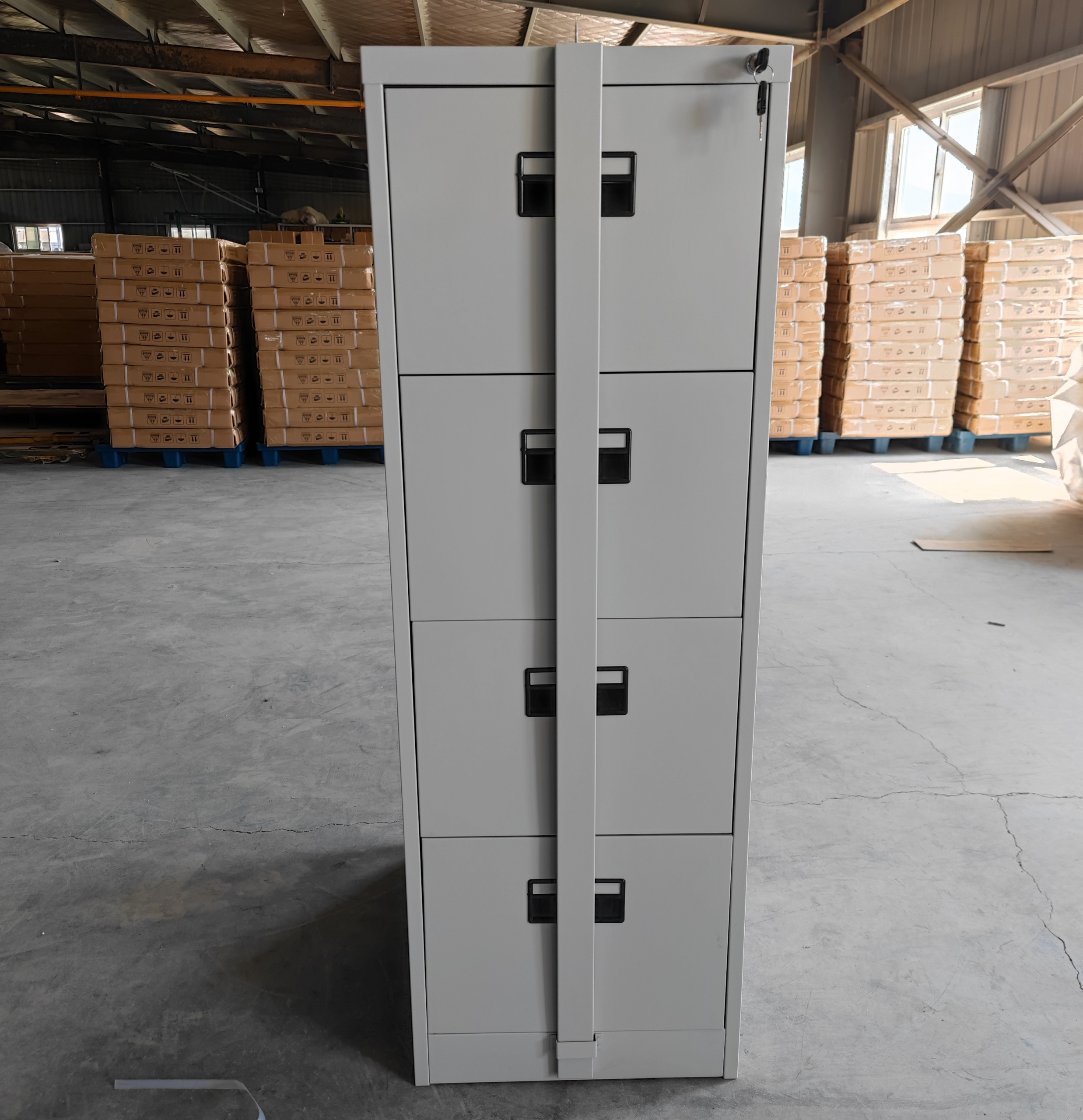 The four spacious drawers provide ample storage for files, stationery, office equipment, and personal items. Each drawer features a secure locking mechanism, giving you peace of mind when storing confidential or valuable documents. The vertical design maximizes storage capacity while saving floor space, making it ideal for compact offices, home workstations, and open-plan environments. Its practical layout allows for organized filing and quick access, helping to maintain a clutter-free workspace.