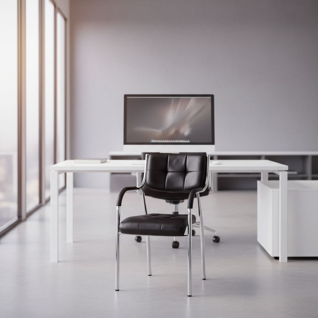 Make a lasting impression with the Black Leather Office Guest Seat, designed for sophistication and comfort. Perfect for office receptions, meeting rooms, and executive spaces, this chair enhances the professional ambiance while ensuring a comfortable seating experience for guests.