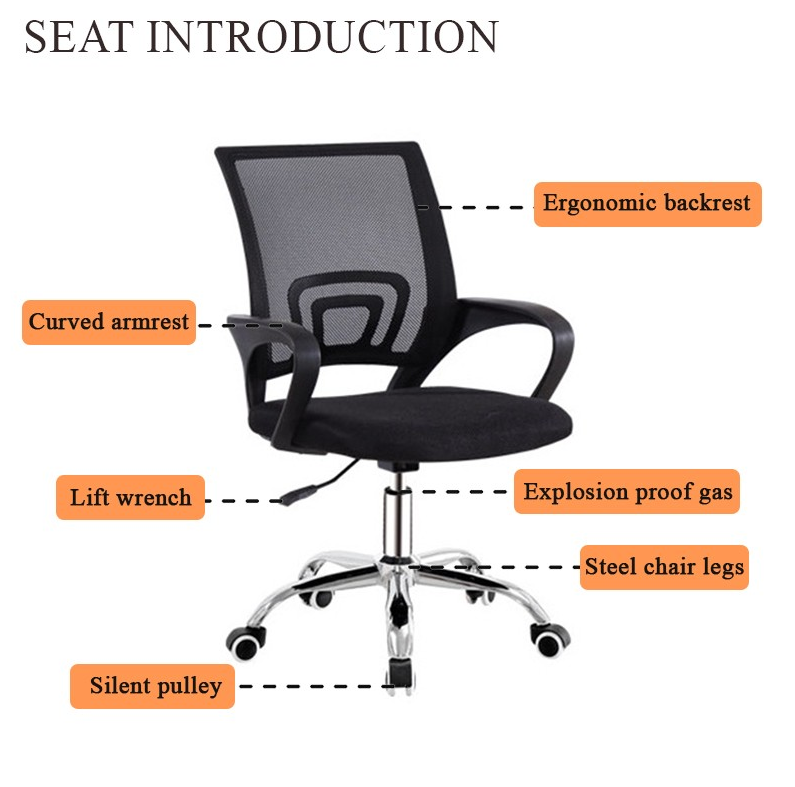 Featuring a mid-back design, the chair provides excellent support to the lumbar region and lower back. The breathable mesh back promotes air circulation, keeping you cool even during extended use. The padded seat offers softness without compromising firmness, delivering the perfect balance of comfort and support for focused work.