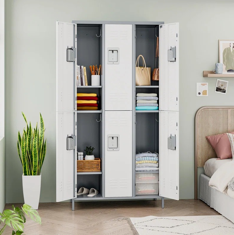 This cabinet features six individual lockers, each equipped with a secure lock to protect personal belongings, documents, and work essentials. The separate compartments allow multiple users to store items safely and privately, making it a perfect choice for shared workspaces. Each locker provides sufficient internal space for bags, files, uniforms, and accessories, helping keep the workplace organized and clutter-free. The smooth-opening doors and sturdy hinges ensure ease of use and reliable operation throughout the day.