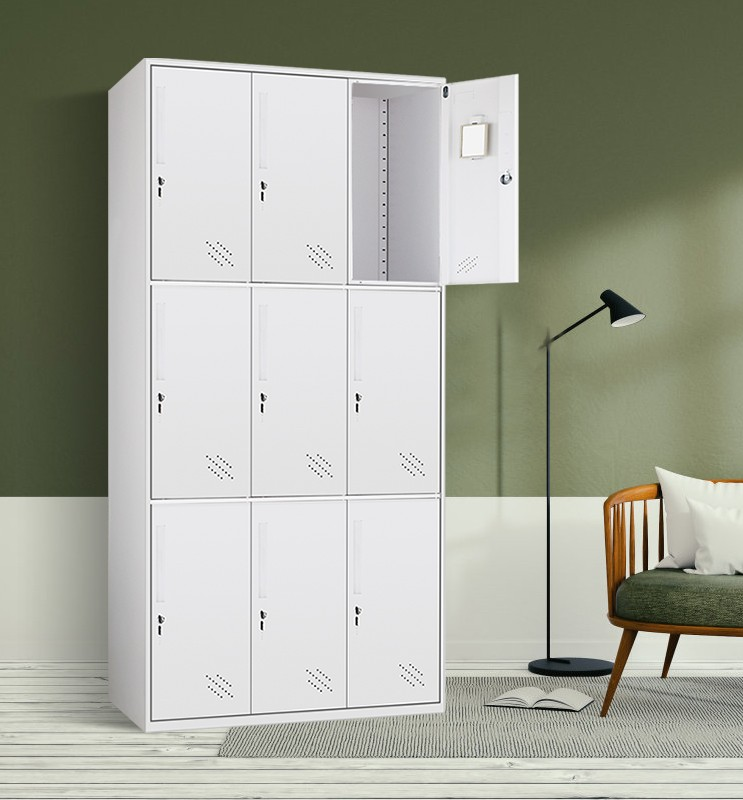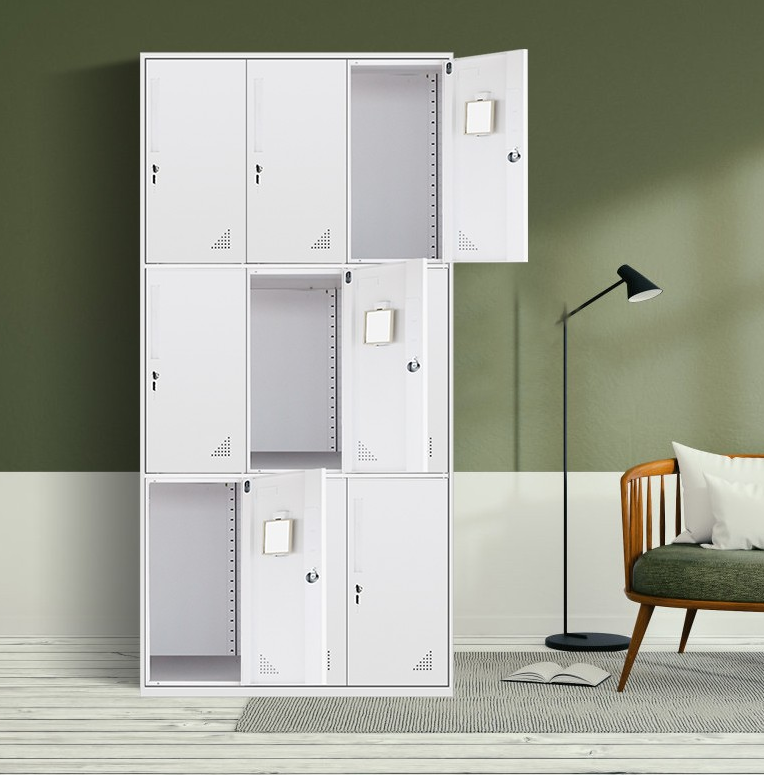 9 Individual Lockers: Each compartment comes with its own door and locking mechanism for private, secure storage.
