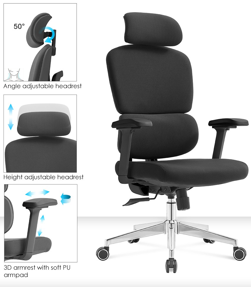 Full Fabric Upholstery: Breathable, soft, and durable material for all-day comfort.