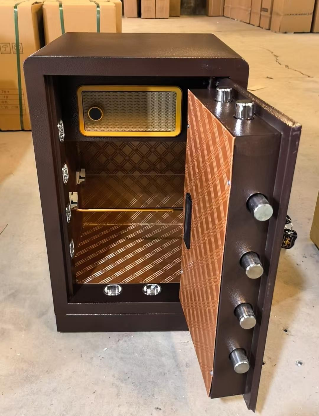 Protect your valuable documents and belongings with the Lockable Digital 70kg Safe Office Cabinet, a perfect combination of advanced security, strength, and modern design. Built for professional environments, this heavy-duty safe cabinet ensures maximum protection for sensitive files, cash, and other important assets. Its sturdy steel construction, digital locking system, and sleek finish make it an ideal addition to offices, banks, hotels, and homes that demand reliable security solutions.