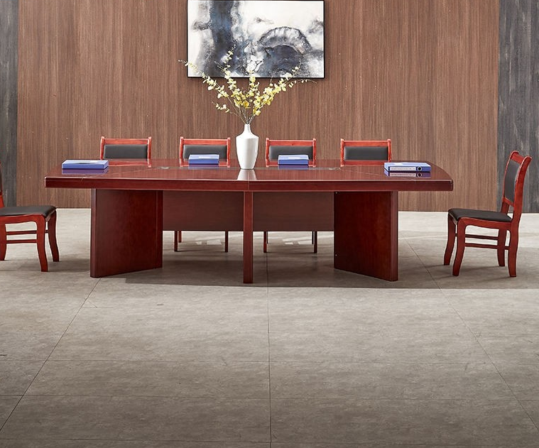 At 2.4 meters in length, this table comfortably seats 6–8 people, offering ample space for laptops, documents, and presentation materials. The smooth mahogany finish adds warmth and luxury to your boardroom, while the sturdy construction ensures long-lasting performance even under daily professional use. Its sleek, rectangular design provides a clean and organized look, making it suitable for both corporate offices and executive meeting rooms.
