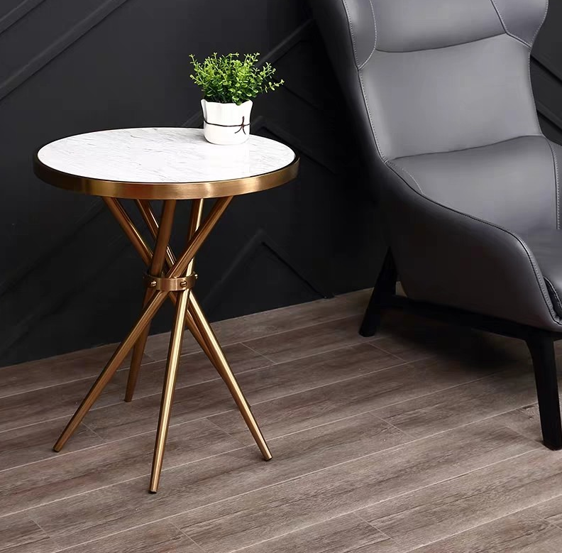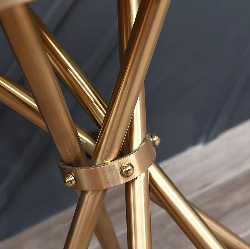 The tabletop features a high-quality marble surface that brings timeless beauty and sophistication to the design. The natural marble patterns create a unique look for every table, making each piece one of a kind. Smooth and visually striking, the marble top is easy to clean and maintain, making it suitable for both residential and commercial environments. Its durable surface provides ample space for serving beverages, displaying décor, or holding books and magazines.