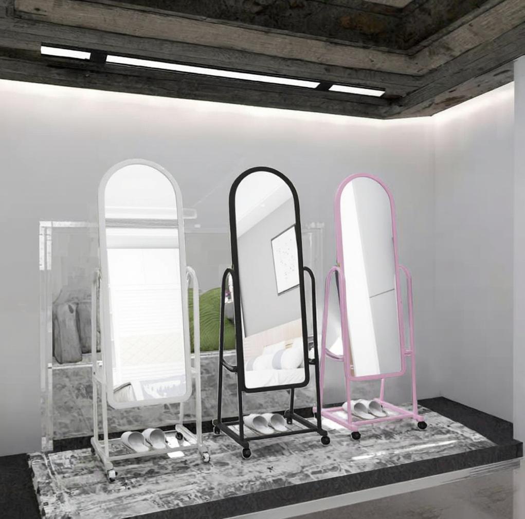 Elevate your dressing experience with the Metal Frame Movable Dressing Mirror, designed for bedrooms, walk-in closets, and retail spaces. Featuring a sturdy metal frame and smooth-rolling casters, this mirror is both durable and easily movable, allowing you to adjust angles and positions effortlessly. The full-length reflective surface provides a clear, distortion-free view, making it ideal for outfit checks, styling, or personal grooming. Its sleek, minimalist design complements modern interiors while offering functional versatility. Perfect for homes, salons, or boutiques, this movable dressing mirror combines practicality, mobility, and style in one elegant piece.
