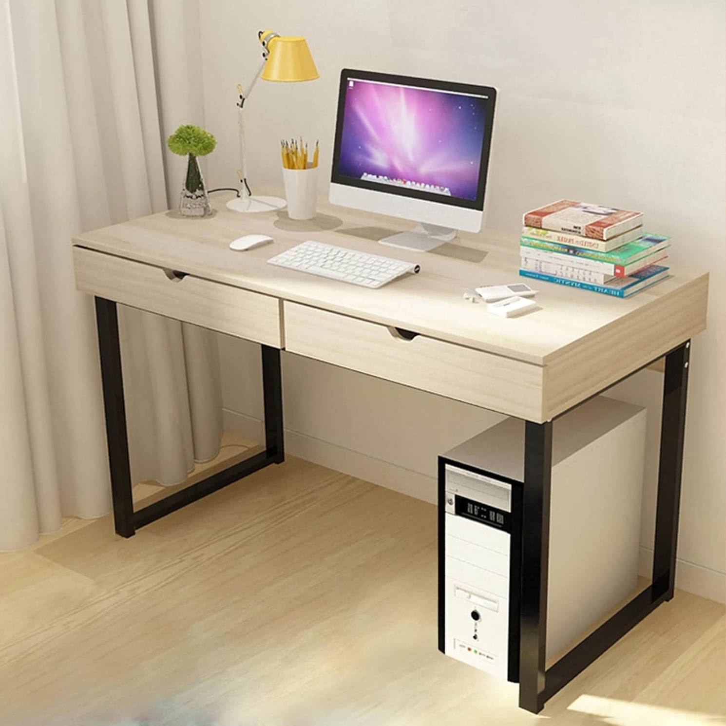 Designed with practicality in mind, this office desk features a compact footprint that fits seamlessly into bedrooms, home offices, or corporate workstations. Its open design allows for flexible legroom and comfortable seating arrangements. The desk’s minimalist style enhances productivity by reducing clutter and providing a clean, organized workspace.