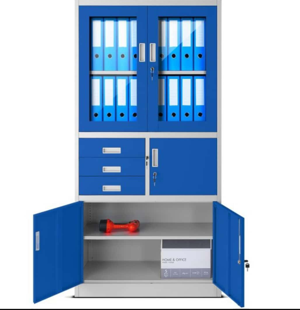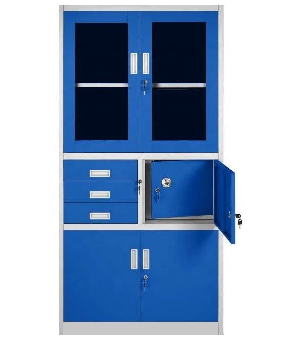Keep your workspace secure and organized with the Metal Office Cabinet with Safe, a perfect combination of functionality, durability, and safety. Built from high-quality cold-rolled steel, this cabinet offers ample storage space for files, documents, and office essentials while featuring a built-in safe for confidential items, cash, or valuables. Its sleek powder-coated finish ensures rust resistance and a professional look suitable for any modern office environment. Designed for maximum convenience, the cabinet includes smooth sliding drawers, adjustable shelves, and a secure locking system for enhanced protection. Ideal for corporate offices, home workspaces, or commercial establishments, this metal office cabinet with safe provides the ultimate balance of style, storage, and security.