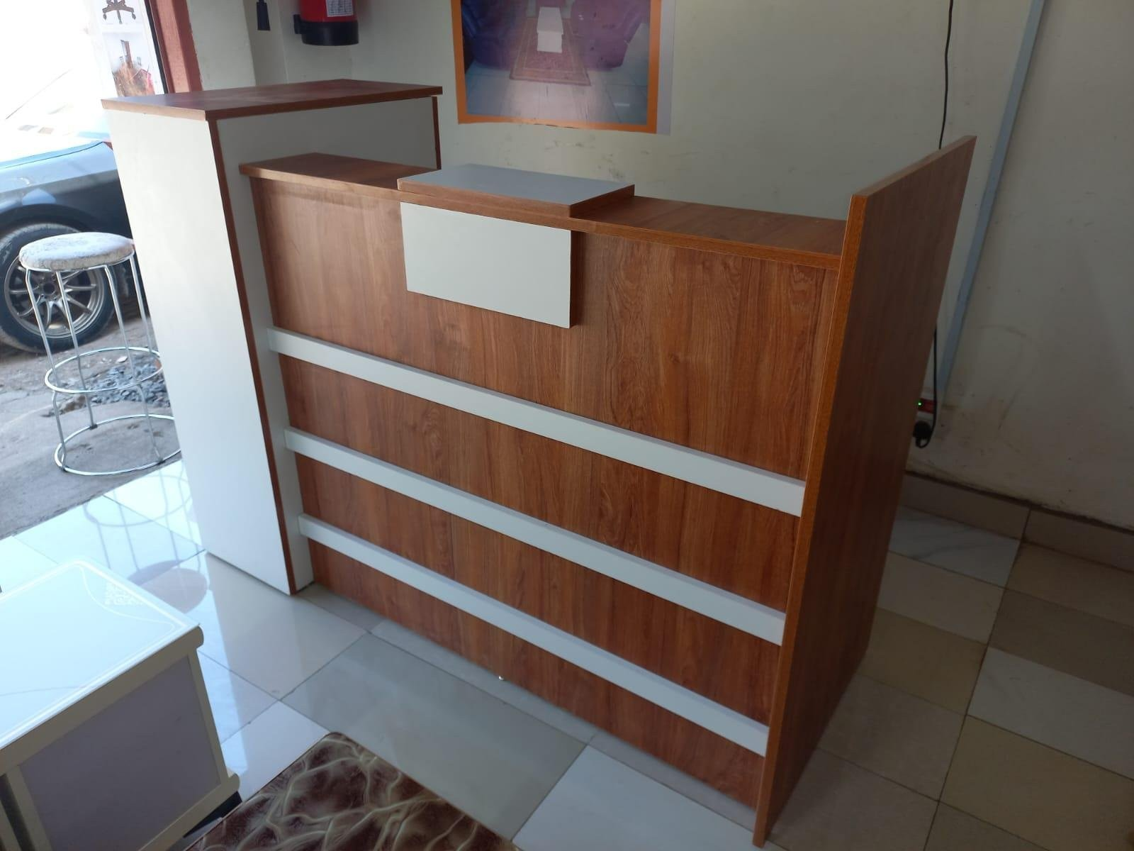 Make a lasting first impression with our Wooden Reception Desk, designed to combine functionality with classic style. Crafted from high-quality wood, this reception desk features a spacious countertop for welcoming guests and managing daily tasks efficiently. Its sturdy construction ensures durability, while the natural wood grain finish adds warmth and professionalism to any office or lobby environment. With built-in storage compartments and a practical layout, this desk supports organization and productivity, making it ideal for reception areas in offices, clinics, hotels, or salons.