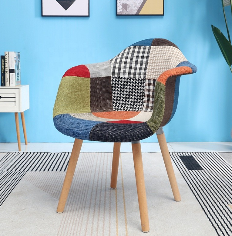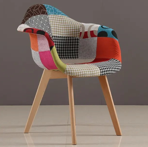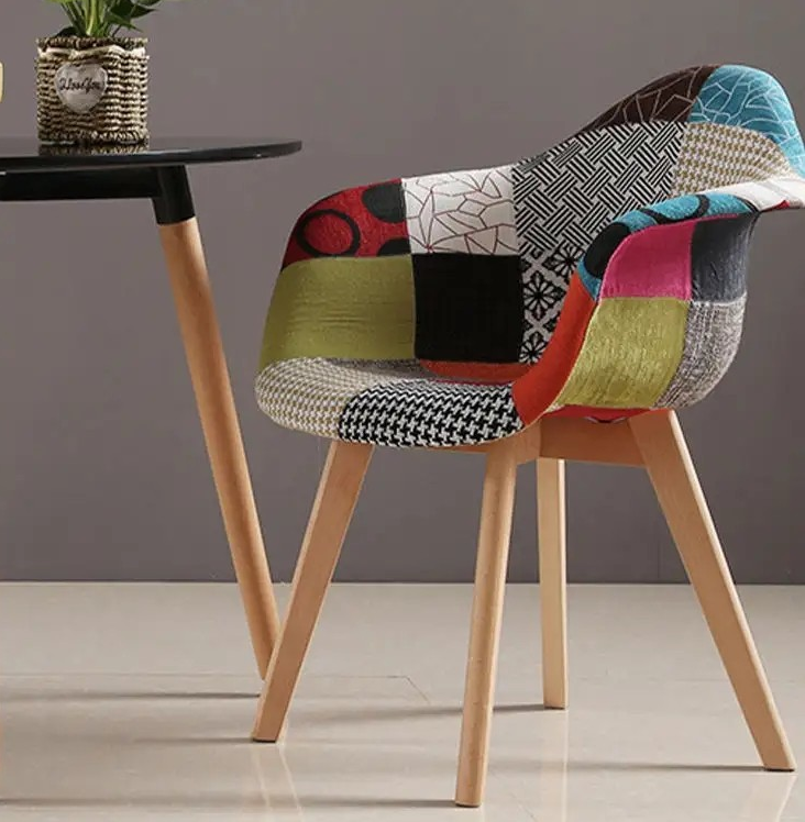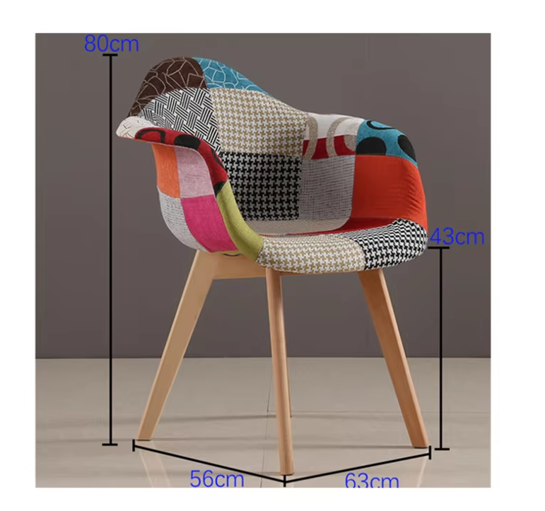 Crafted with a high-quality fabric patchwork design, each chair is a work of art, featuring a mix of bold patterns and soft tones that instantly brighten any space. The colorful stitching and textured fabric create a lively yet elegant look, making the Modern Patchwork Chair perfect for modern, bohemian, or eclectic interiors. Whether placed around a dining table or as a statement piece in your garden, it effortlessly enhances your décor.