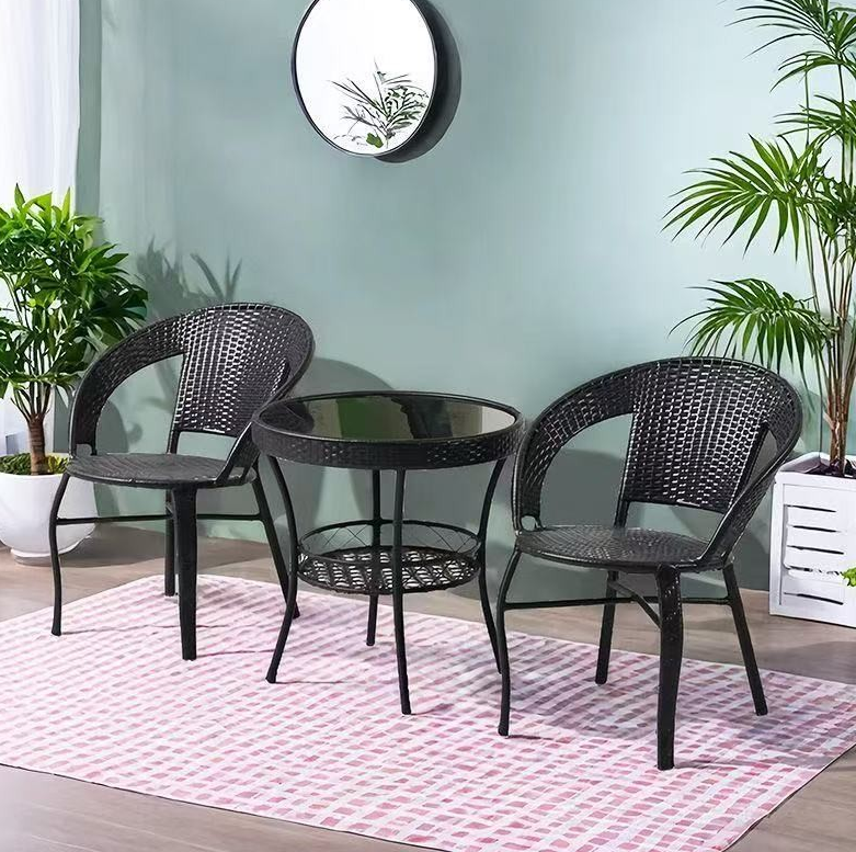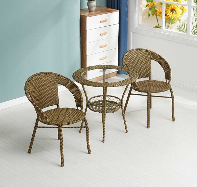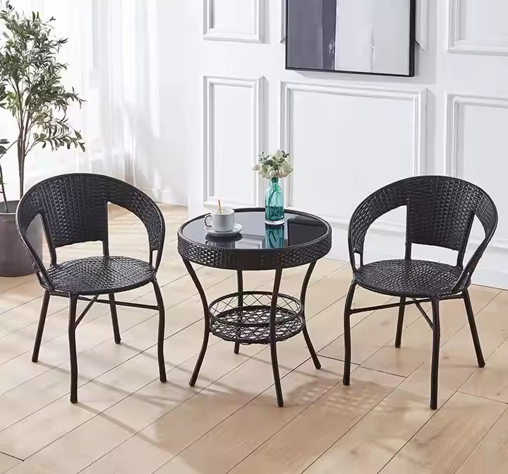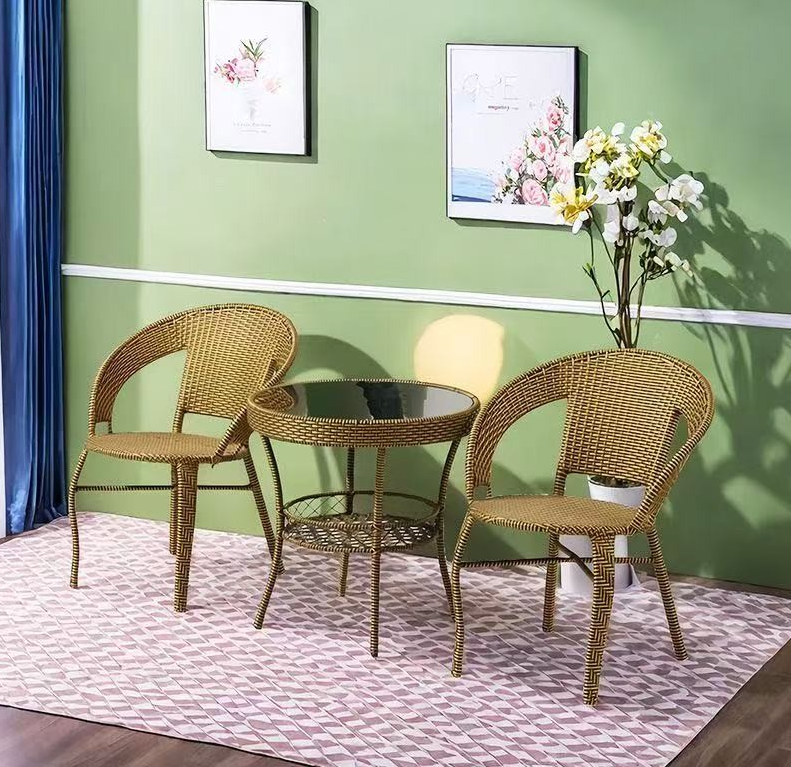 The set includes a chic rattan table and two matching chairs, designed for both indoor and outdoor use. The woven rattan texture adds a natural, sophisticated look, while the sturdy frame ensures long-lasting performance. Its compact design makes it ideal for couples, roommates, or intimate gatherings, providing a comfortable and inviting space for meals, coffee, or casual conversations.