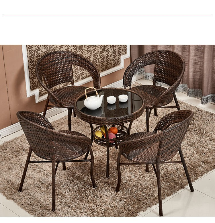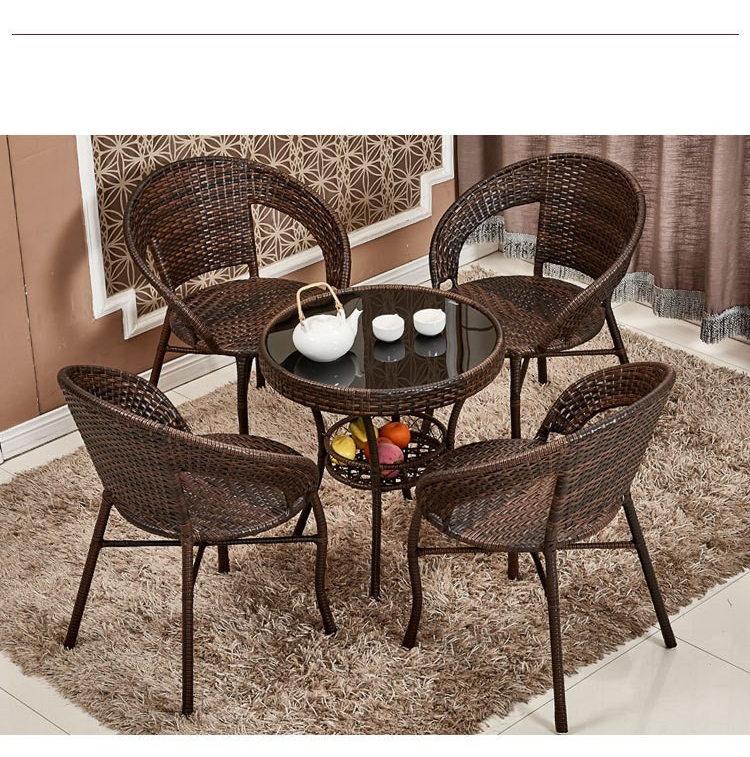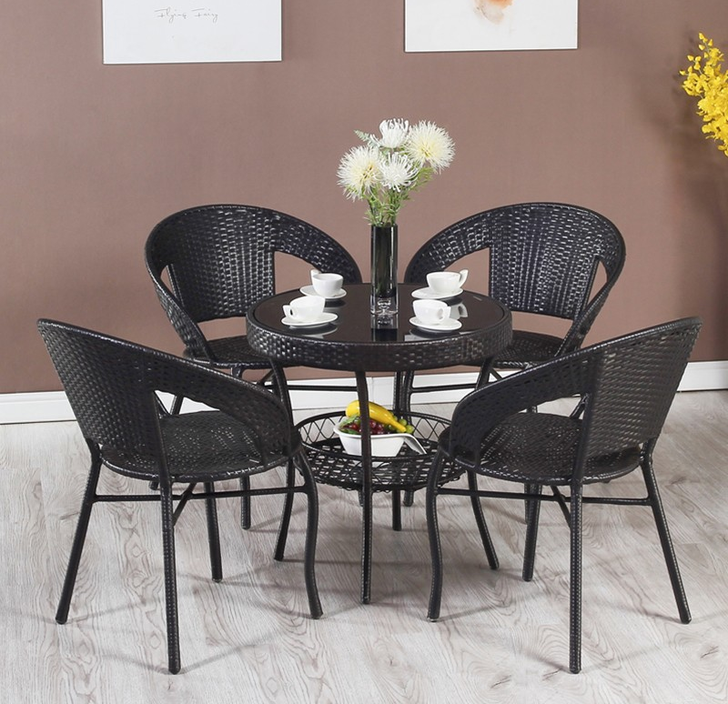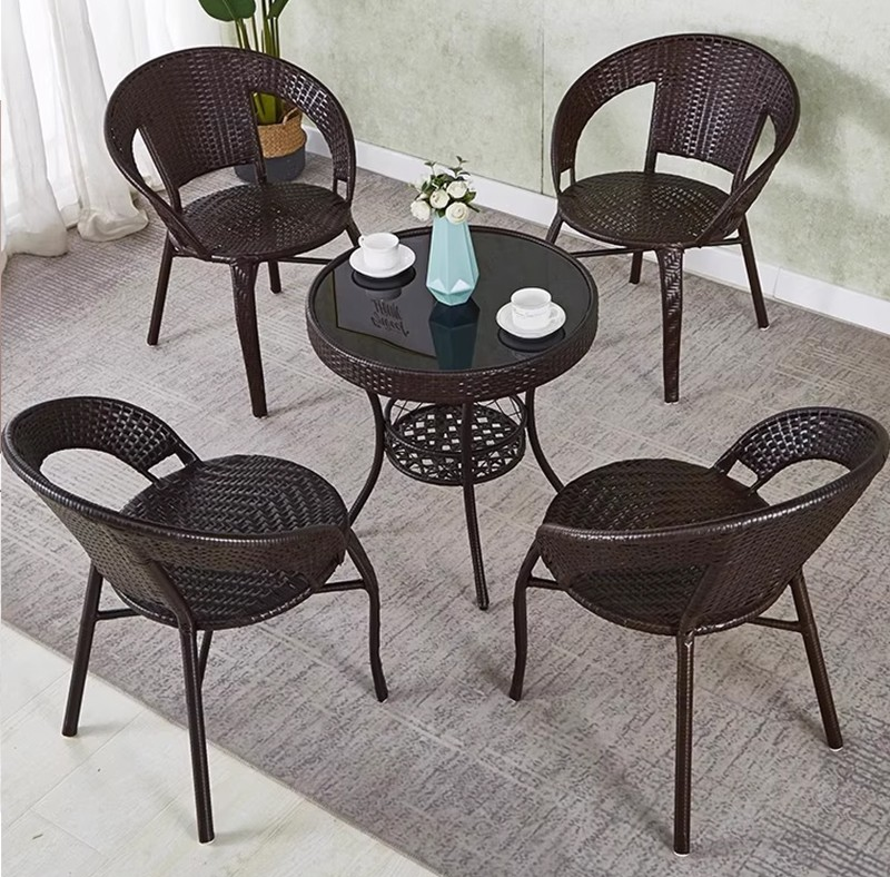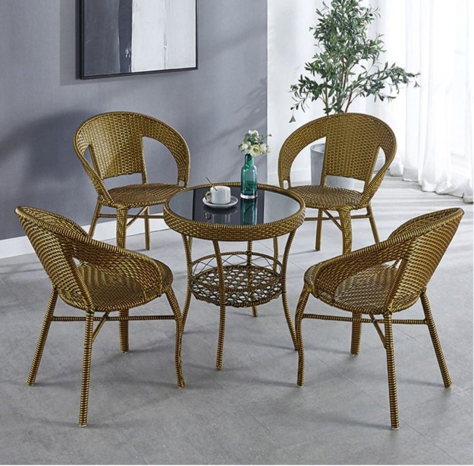 Crafted from high-quality synthetic rattan, this outdoor dining set offers the natural look of wicker with superior weather resistance. The handwoven rattan resists fading, cracking, and moisture, making it ideal for year-round outdoor use. A strong, powder-coated metal or aluminum frame provides excellent stability and rust resistance, ensuring the set remains sturdy even in changing weather conditions.