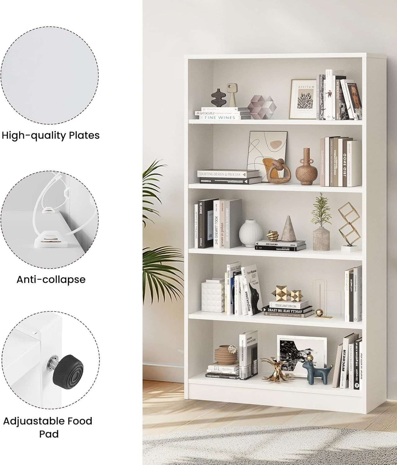Featuring five spacious shelves, this bookshelf offers ample room to store books, magazines, photo frames, plants, or office supplies. The open shelving design allows easy access to your items, while helping maintain an organized and clutter-free environment. Whether you’re creating a personal library, showcasing decorative accents, or organizing office materials, this bookshelf adapts seamlessly to your needs.
