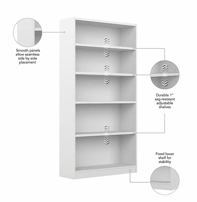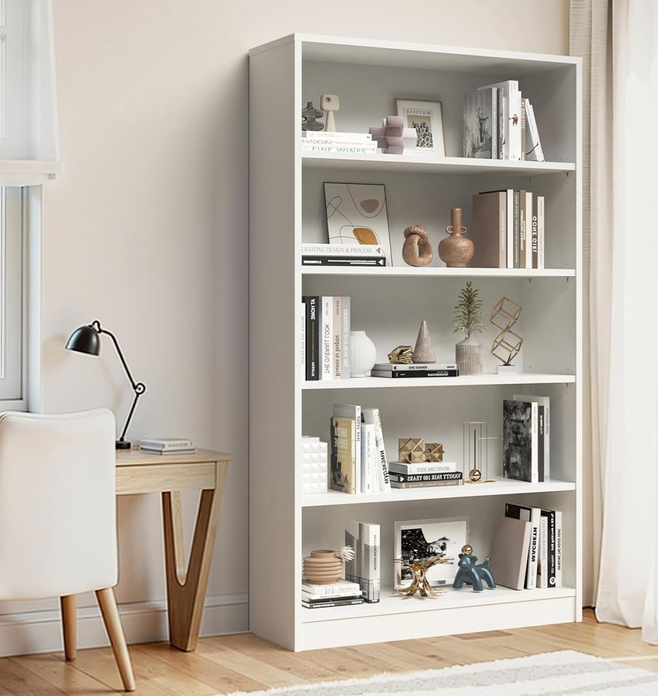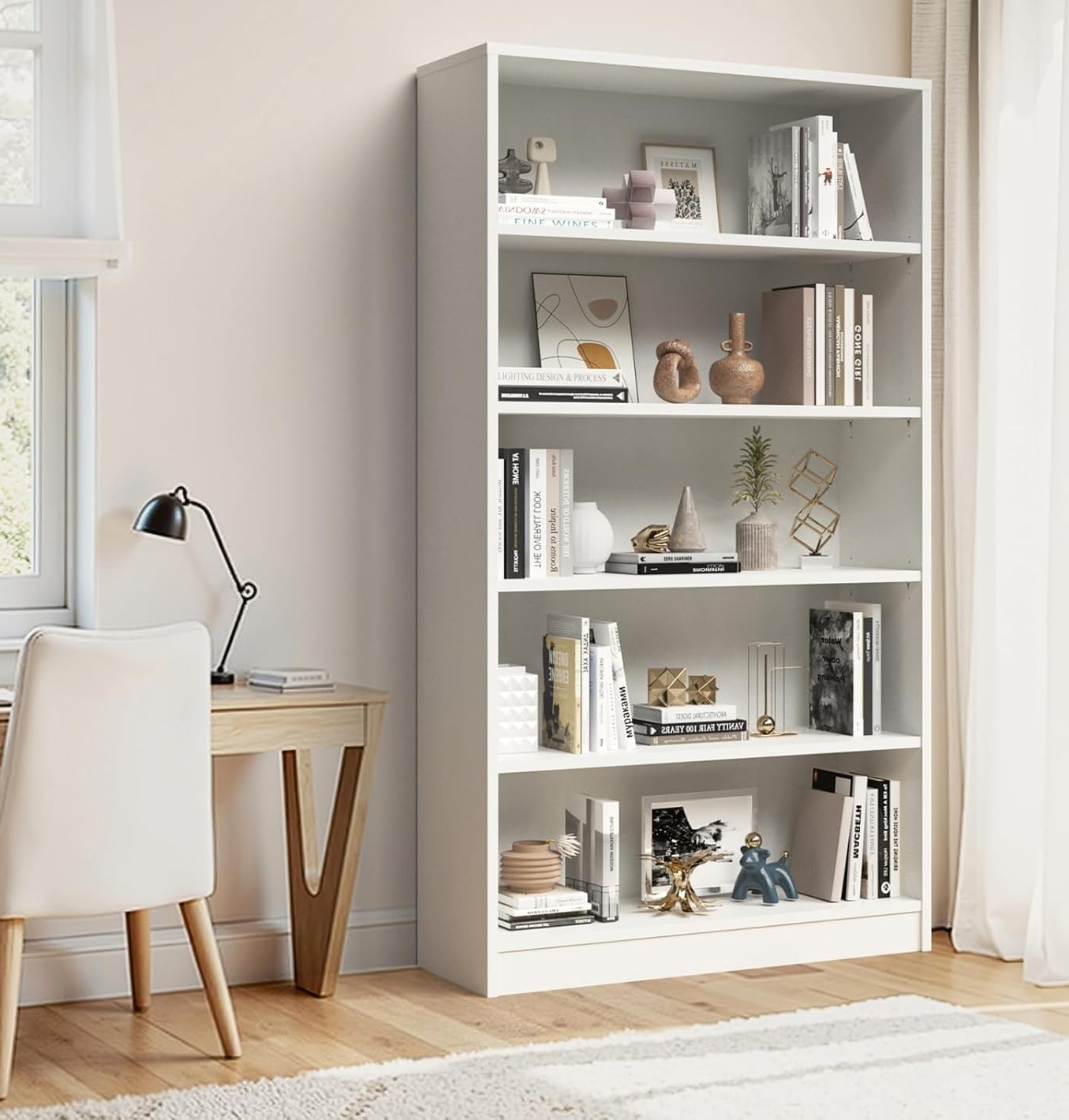 Stay organized and stylish with the 5-Tier White Office Bookshelves – the perfect storage solution for a tidy, modern workspace.