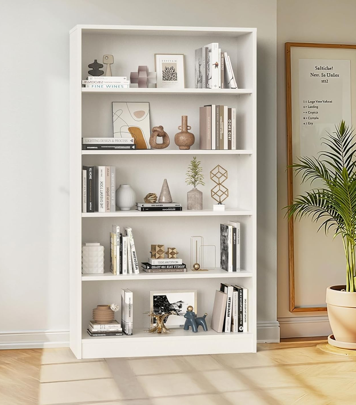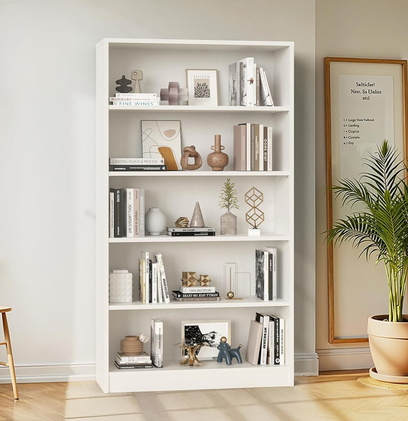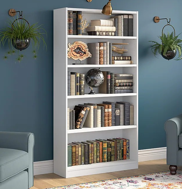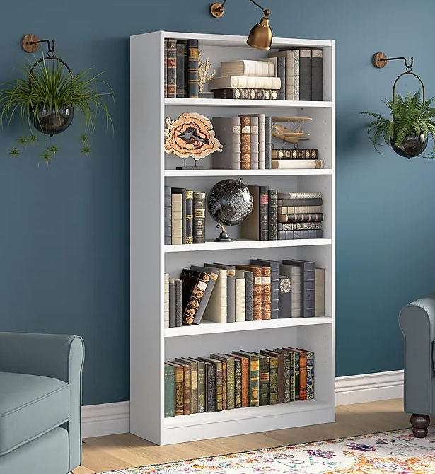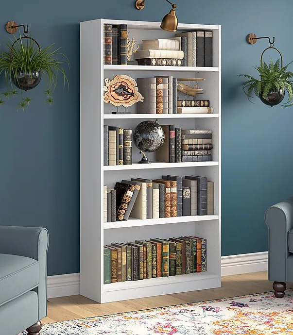 Five spacious shelves provide ample storage for books, décor, and essentials