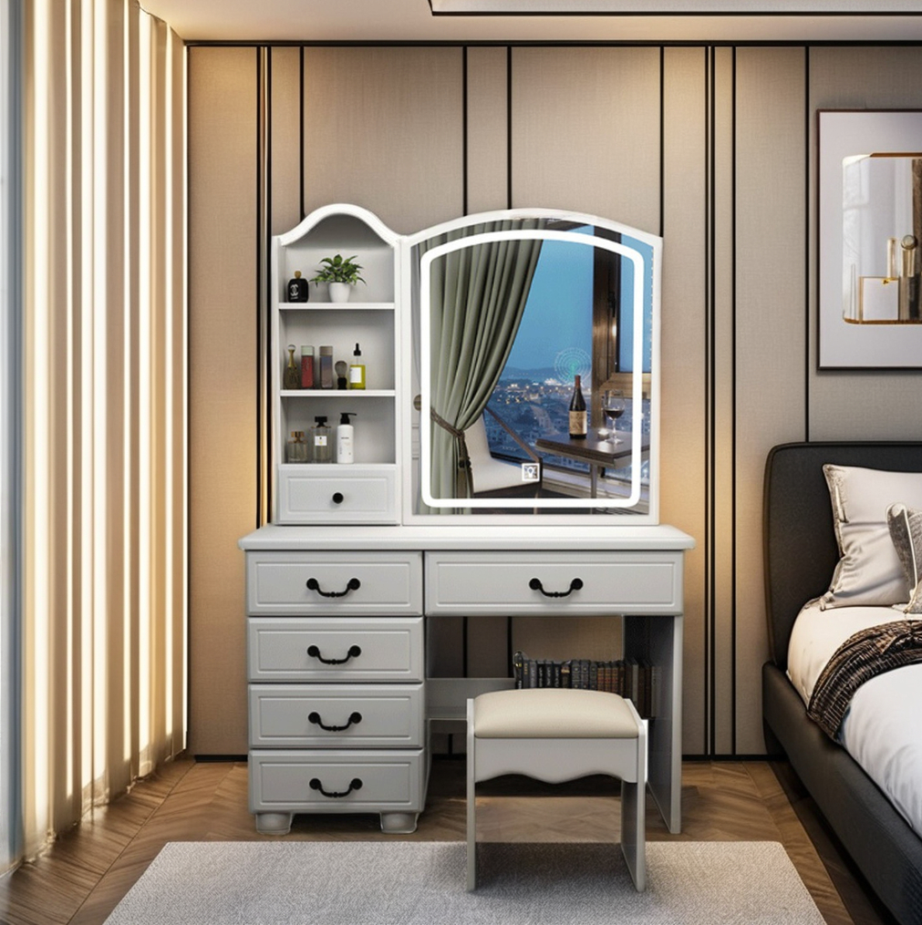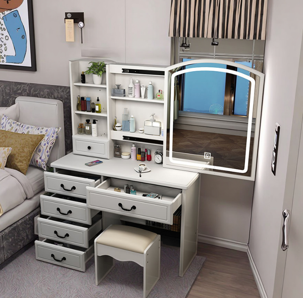 Built-In Storage: Includes drawers or compartments for storing cosmetics, brushes, skincare products, and other personal items, keeping your vanity tidy and organized.