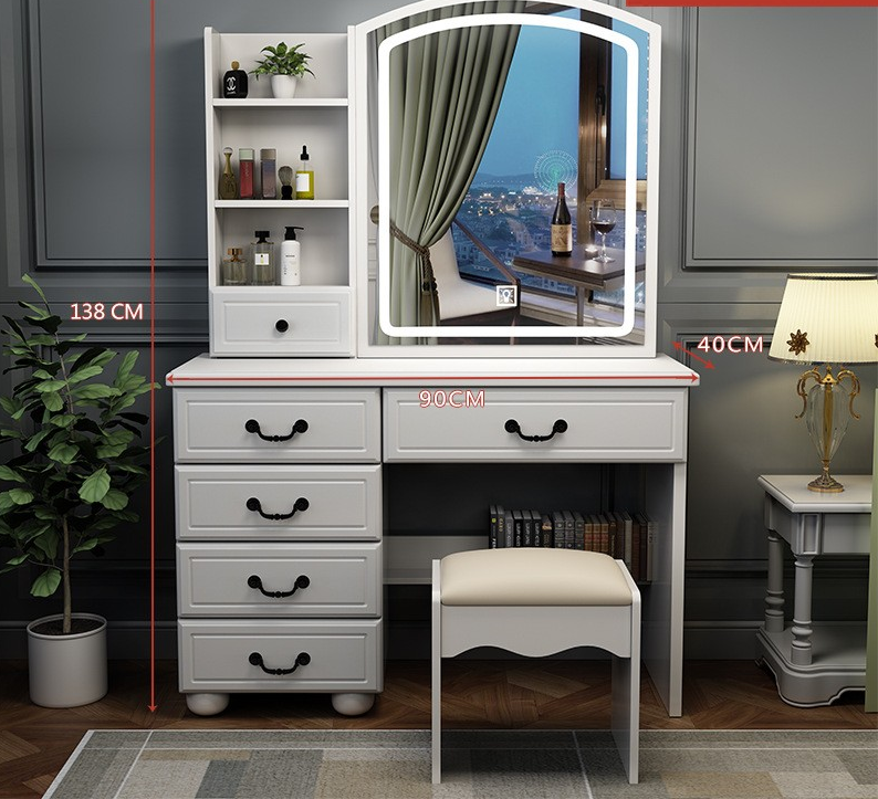 Mirrored Design: Often paired with a large, stylish mirror, offering full visibility for makeup application or grooming.