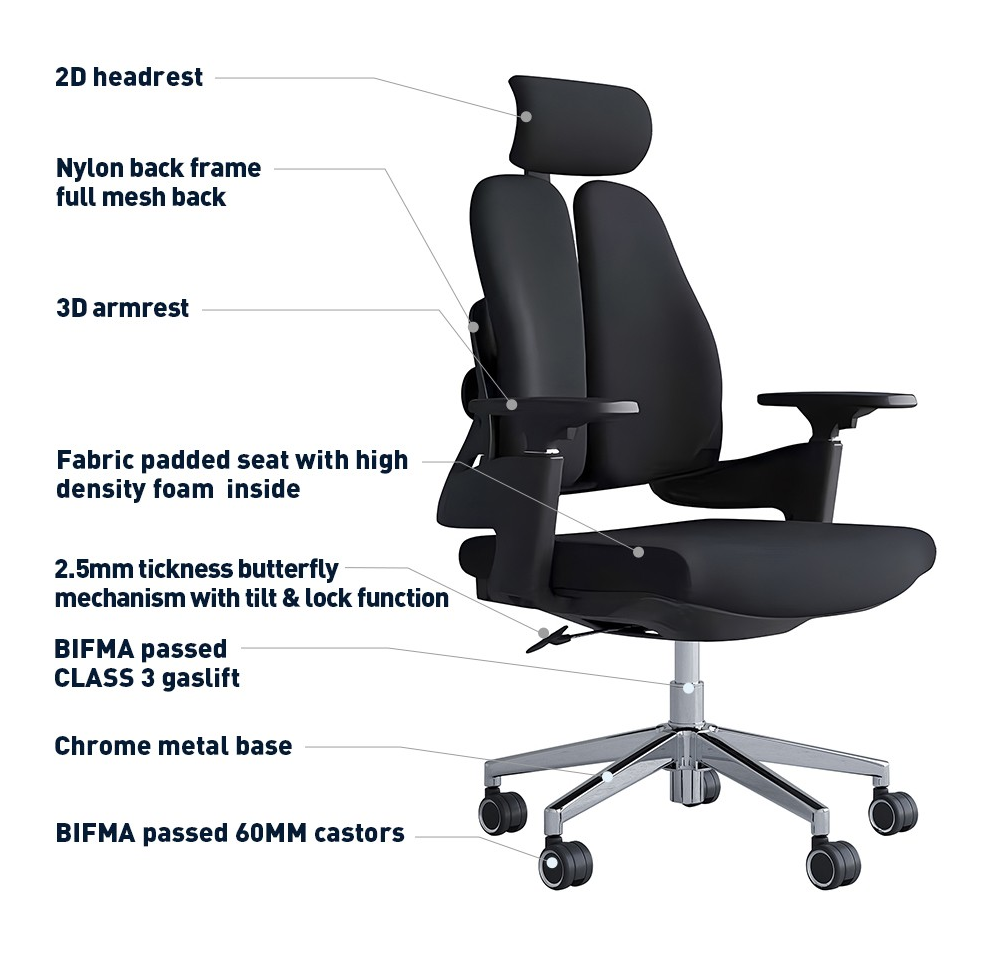 With built-in lumbar support and an adjustable design, this chair helps maintain proper posture and reduce strain on the spine, preventing back pain and discomfort. -