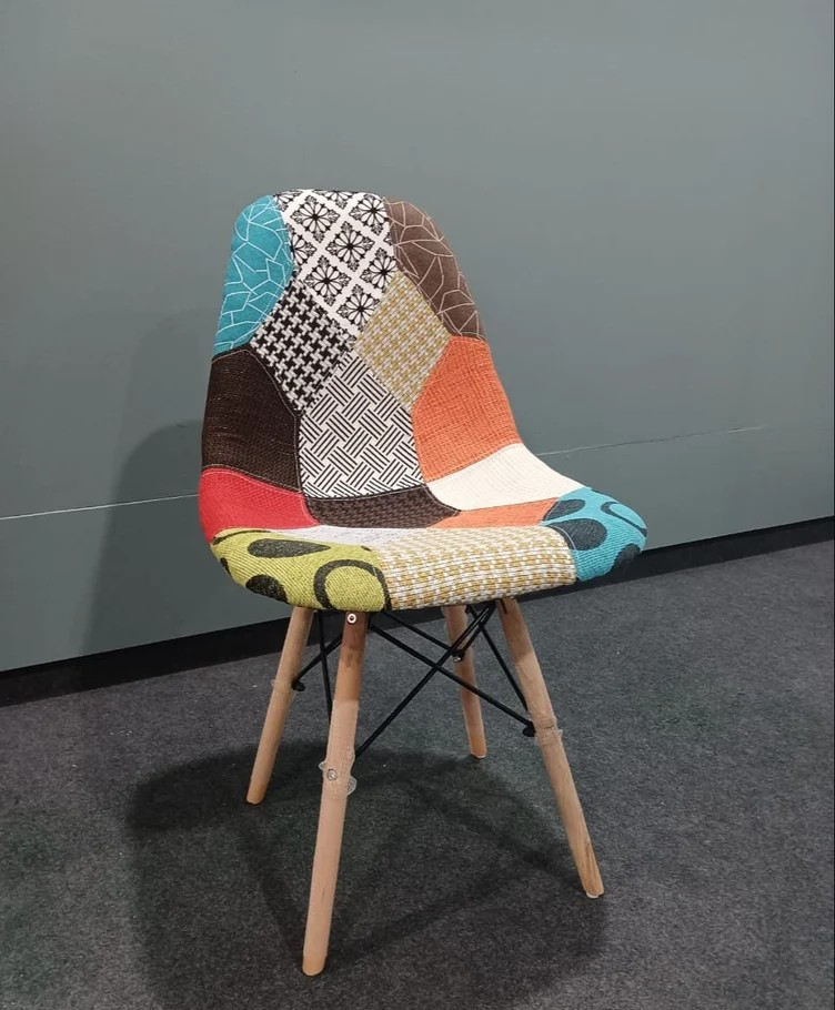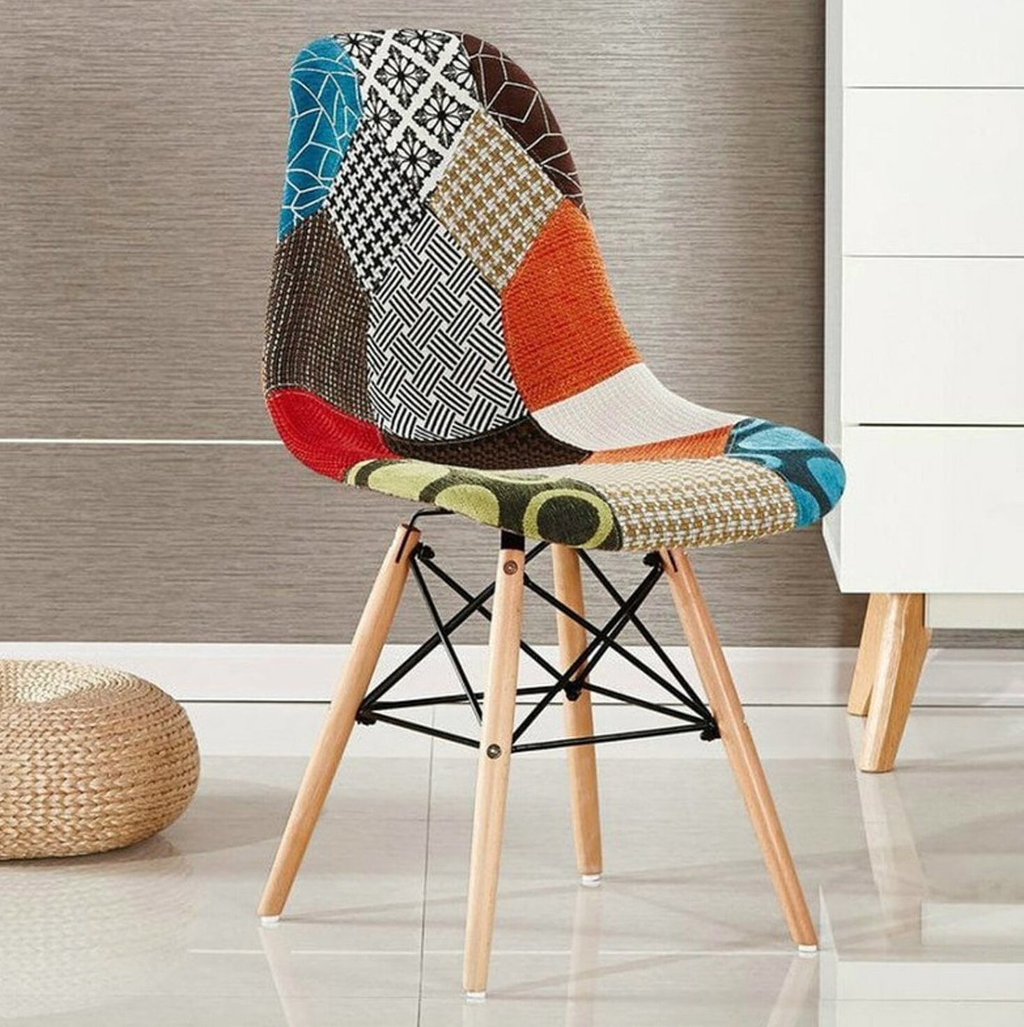 The chair features premium-quality fabric with eye-catching patchwork designs that make each piece unique. The soft yet durable upholstery offers a comfortable seating experience, ideal for family meals, gatherings, or long dining sessions. The vibrant patterns and mix of colors add character to your space, creating a lively and inviting atmosphere. This chair is perfect for those looking to infuse personality and style into their dining area.