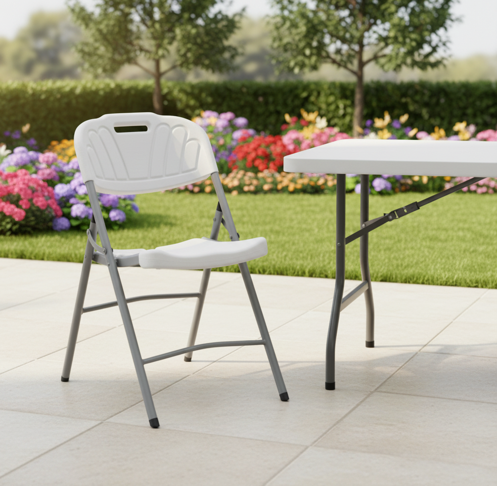 Crafted from high-quality, weather-resistant plastic, this foldable garden chair is built to withstand daily outdoor exposure. The sturdy plastic construction resists moisture, UV rays, and temperature changes, ensuring long-lasting performance without fading, cracking, or rusting. Unlike metal or wooden chairs, it requires minimal maintenance—simply wipe it clean with a damp cloth to keep it looking fresh and new season after season.