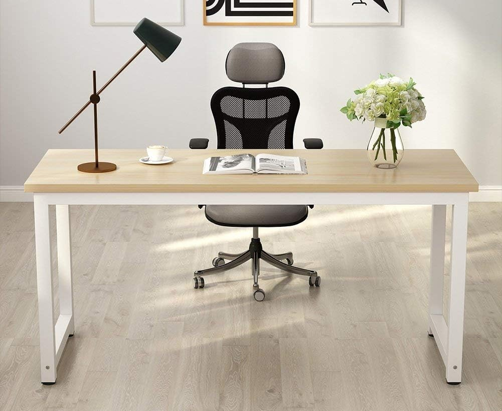 The sturdy metal frame ensures stability, keeping the desk firm even under heavy loads. Powder-coated metal legs resist scratches, corrosion, and daily wear, extending the desk’s lifespan. The smooth desktop is easy to clean, water-resistant, and accommodates computers, office supplies, files, and personal items without crowding your workspace. Its open design offers ergonomic legroom and flexible chair placement, promoting comfort during long hours of work.