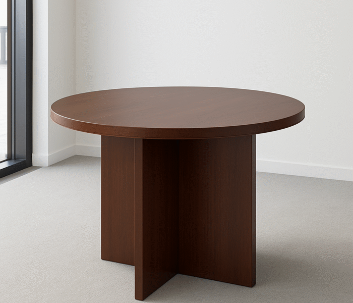 Elevate your meeting space with the Round Wooden Mini Conference Table, designed to combine style, practicality, and durability. Crafted from premium solid wood, this table offers a sophisticated and timeless look that enhances any office, boardroom, or collaborative workspace. Its compact round design encourages open conversation, teamwork, and effective communication, making it ideal for small group meetings or brainstorming sessions.