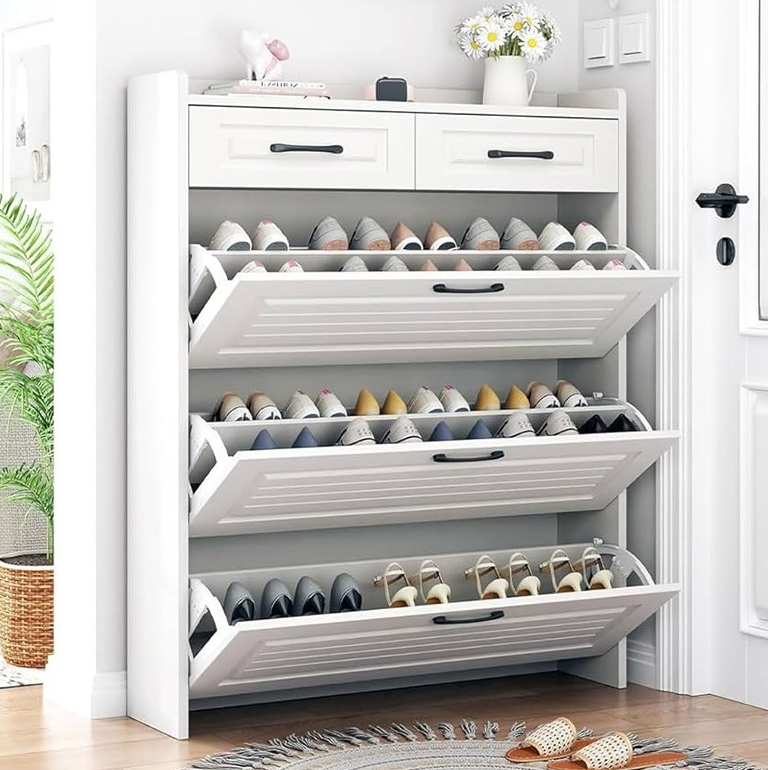 The cabinet’s sturdy wooden frame ensures durability and long-lasting use. A smooth finish adds elegance to your home decor. Multiple compartments securely hold shoes of all sizes. You can easily arrange and access your footwear every day. Its clean lines and minimalist style complement both modern and traditional interiors effortlessly.