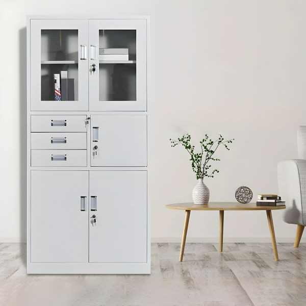 We manufacture this 4 door office storage cabinet using high-quality cold-rolled steel. The solid steel construction delivers excellent strength and long-term durability. A premium powder-coated finish protects the surface from rust, corrosion, and scratches. This finish also keeps the cabinet looking new for years. The sturdy frame supports heavy loads, making it ideal for both light and heavy storage requirements.