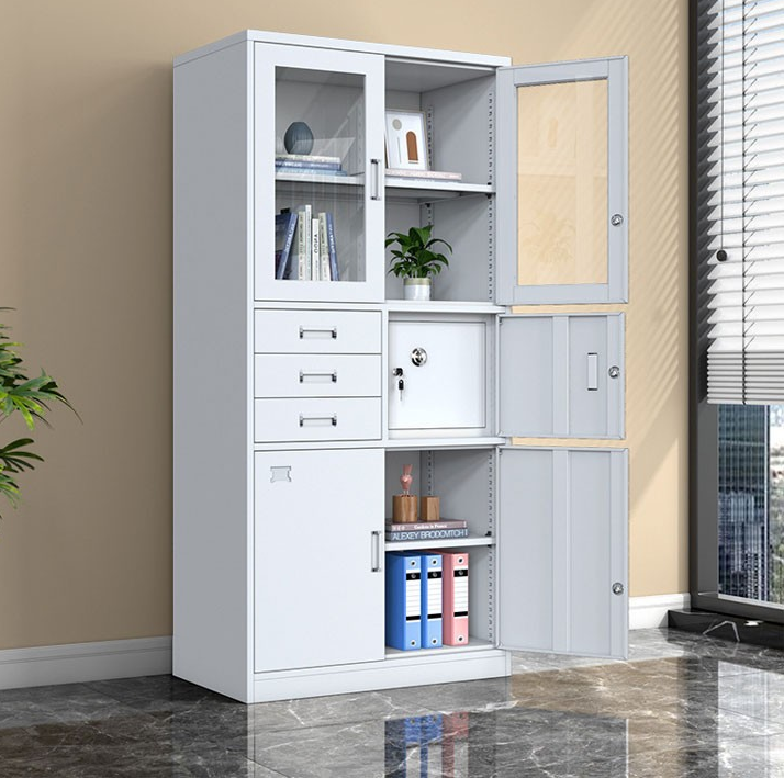 The four-door cabinet design improves organization and accessibility. Each compartment offers generous internal space, allowing users to sort items efficiently. This layout helps improve productivity and reduces clutter in busy work environments. The cabinet features reliable locking systems on each door to protect confidential files and valuable office supplies.