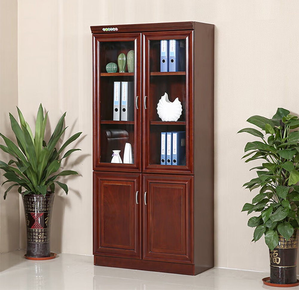 The half glass doors add a modern touch and allow you to display important documents or decorative items neatly. The combination of wood and glass creates a balanced aesthetic. It fits seamlessly into both contemporary and classic office interiors. The transparent panels make it easy to view contents at a glance, improving accessibility without sacrificing style.