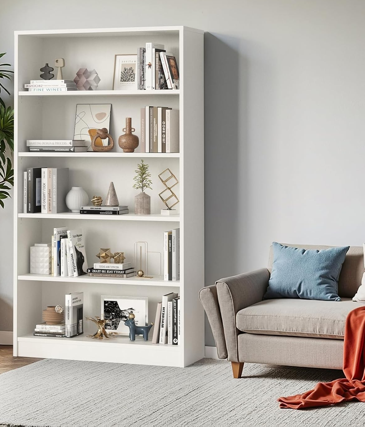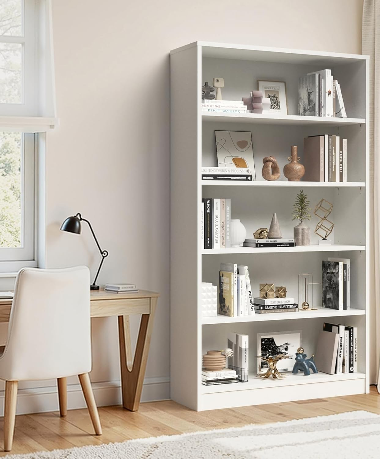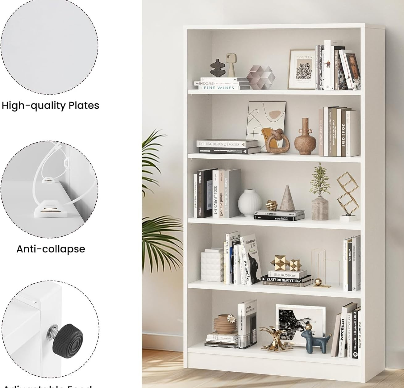 ✅ 5 Spacious Shelves: Offers plenty of storage space for books, decor, or office essentials