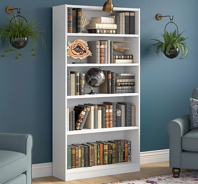 5 Spacious Tiers: Provides ample storage for books, files, décor, and office essentials