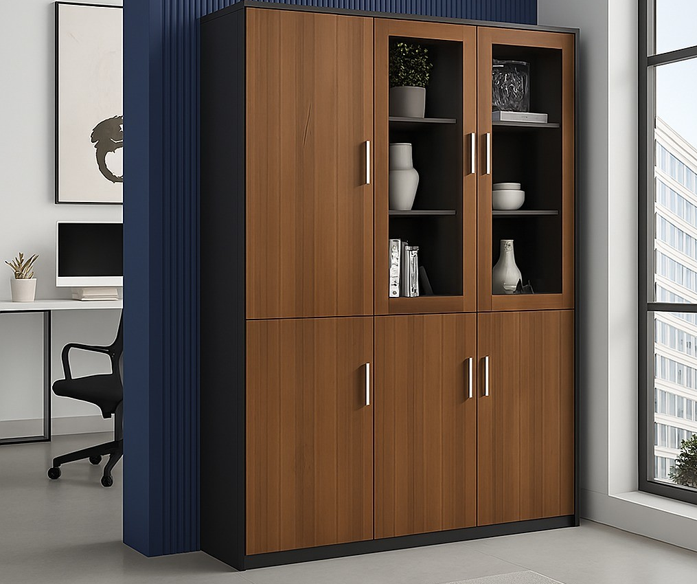 The Wooden Lockable 3 Door Office Cabinet is a durable and secure storage solution designed to keep your office organized and clutter-free. Crafted with high-quality engineered wood and fitted with strong lockable doors, this cabinet offers reliable protection for important documents, files, and office essentials. Its spacious three-door layout provides ample storage while maintaining a clean, professional appearance suitable for modern workspaces. With a smooth finish, sturdy construction, and timeless design, this office cabinet is ideal for corporate offices, home workstations, institutions, and reception areas seeking secure and stylish storage.