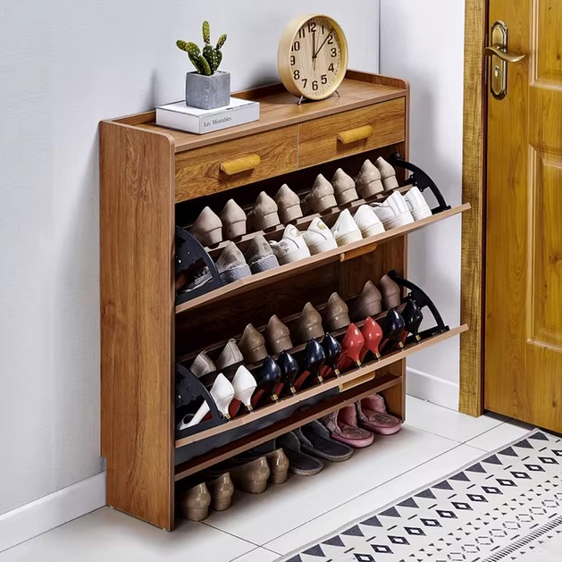 The Wooden Shoe Rack with Storage is a practical and stylish solution to keep your entryway, bedroom, or closet organized. Crafted from high-quality wood, this durable shoe rack offers multiple tiers for neatly storing shoes, while additional compartments provide space for accessories, bags, or small household items. Its compact yet functional design maximizes storage without occupying too much space, making it ideal for homes of any size. With a sleek, natural finish, it blends seamlessly into modern and traditional interiors, helping you maintain a tidy and clutter-free living area.